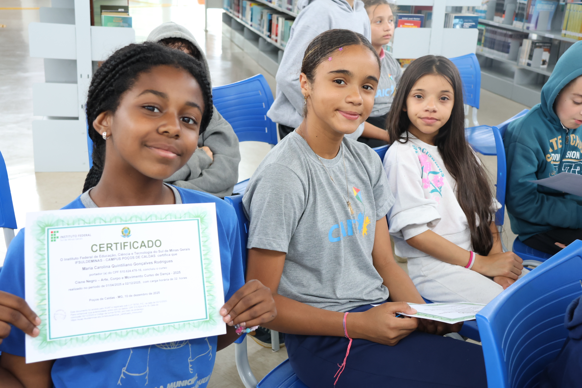 Ao longo do ano, os participantes estiveram envolvidos em atividades voltadas à musicalidade, coordenação motora e expressão corporal. Como forma de reconhecer o envolvimento e a dedicação dos alunos, foi realizada, no dia 12 de março de 2026, a cerimônia de entrega de certificados. A atividade aconteceu no PMJ João Monteiro, no bairro Jardim Esperança. Os certificados também foram entregues na biblioteca do campus, onde as crianças tiveram a oportunidade de conhecer o espaço, circular pelo ambiente e visitar as exposições realizadas no local.