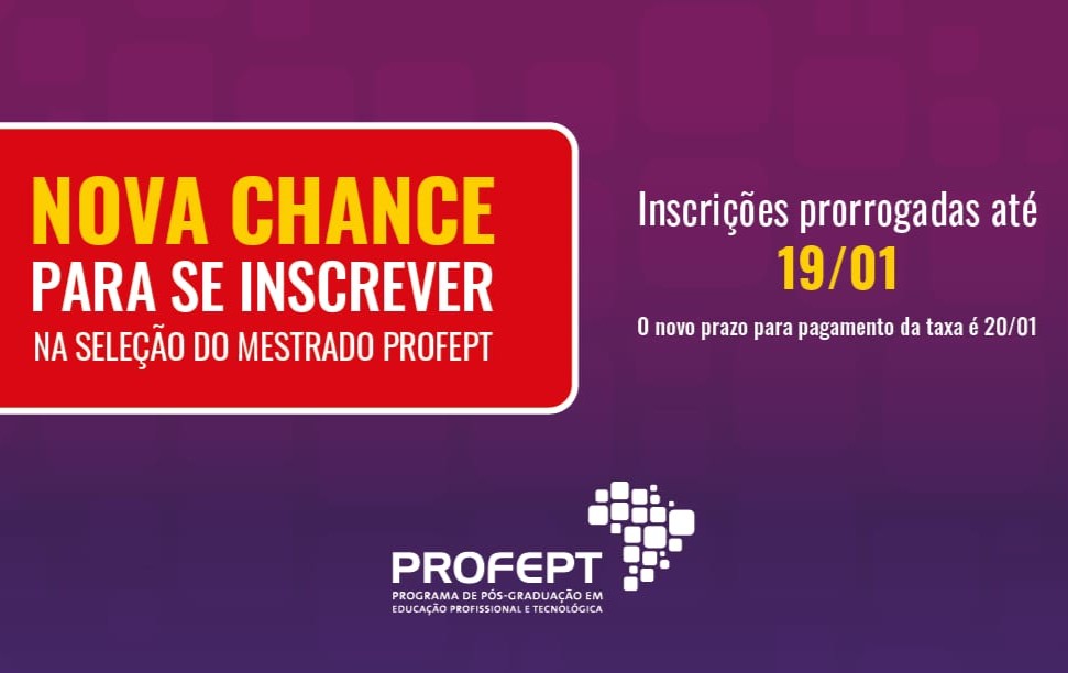 Últimos dias para inscrever no Mestrado Profissional ProfEPT! Inscrições até 15/01. Participe!