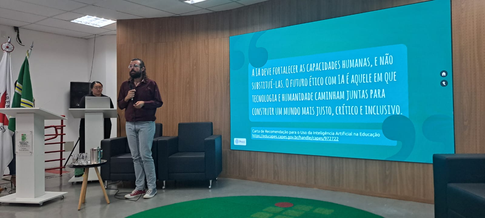 Entre os palestrantes, estiveram Maria Carolina Fernandes, que falou sobre Transformação digital e escalabilidade de negócios; Carol Affonso, que abordou Marketing digital e Inteligência Artificial para negócios; e Straus Michalsky, que apresentou reflexões sobre Ética no uso de IAs generativas.