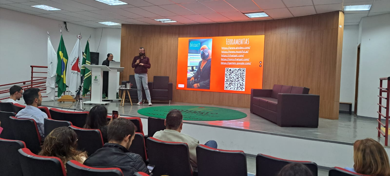 Durante a noite, o auditório do campus se tornou um espaço de troca de ideias e experiências, aproximando o ambiente acadêmico de iniciativas que unem propósito, inovação e responsabilidade social.