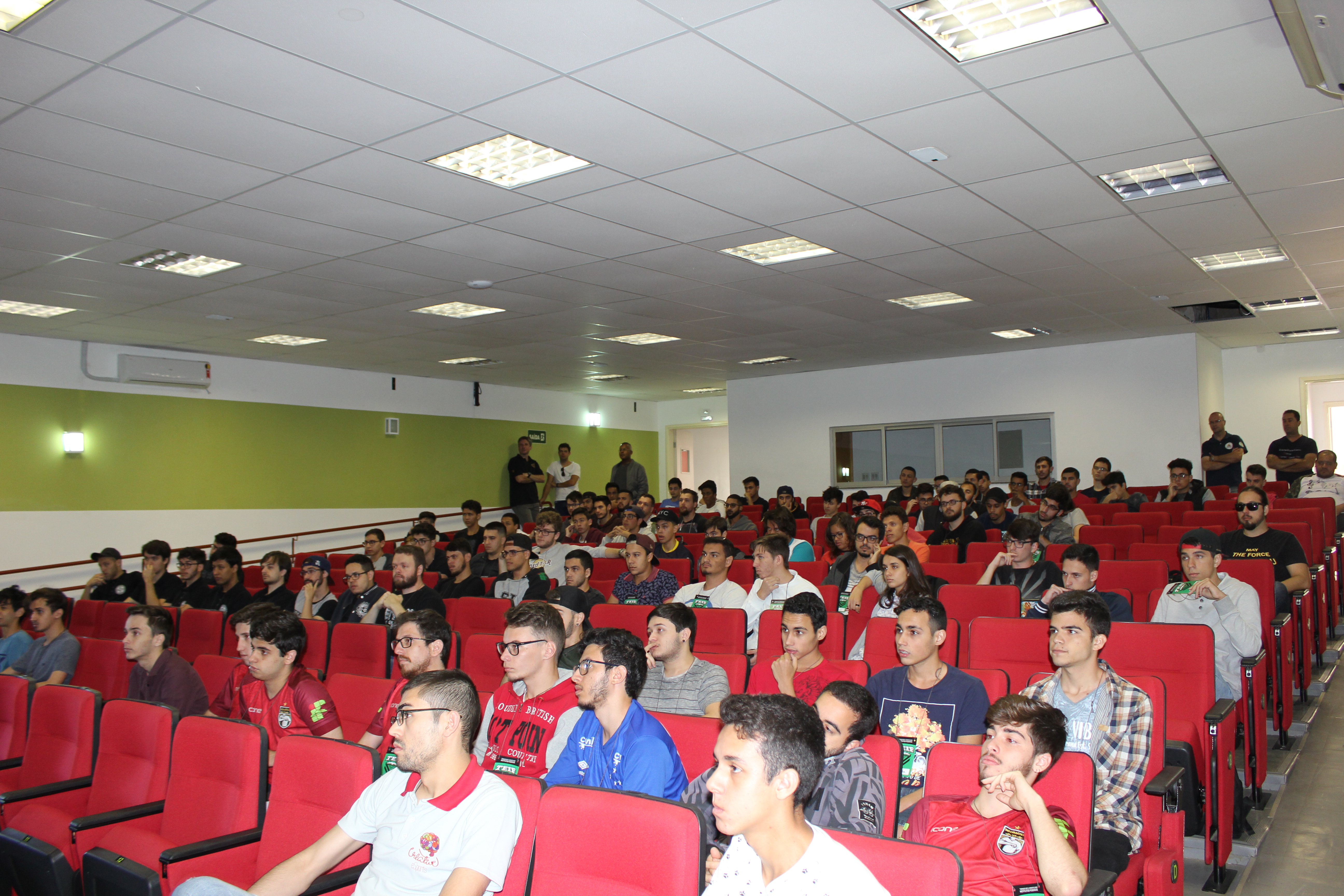 Os palestrantes apresentando o universo do esporte eletrônico à plateia.