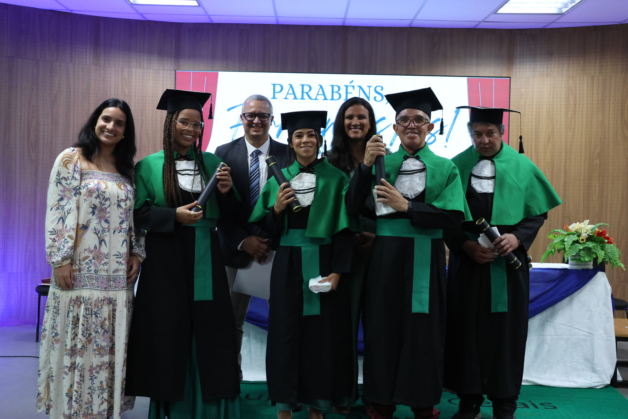Colaram grau estudantes dos cursos de Bacharelados em Administração e Engenharia da Computação, das Licenciaturas em Ciências Biológicas e Geografia, além do curso de Tecnologia em Gestão Ambiental. A solenidade representou o resultado de anos de dedicação aos estudos e superação de desafios na construção dos conhecimentos.