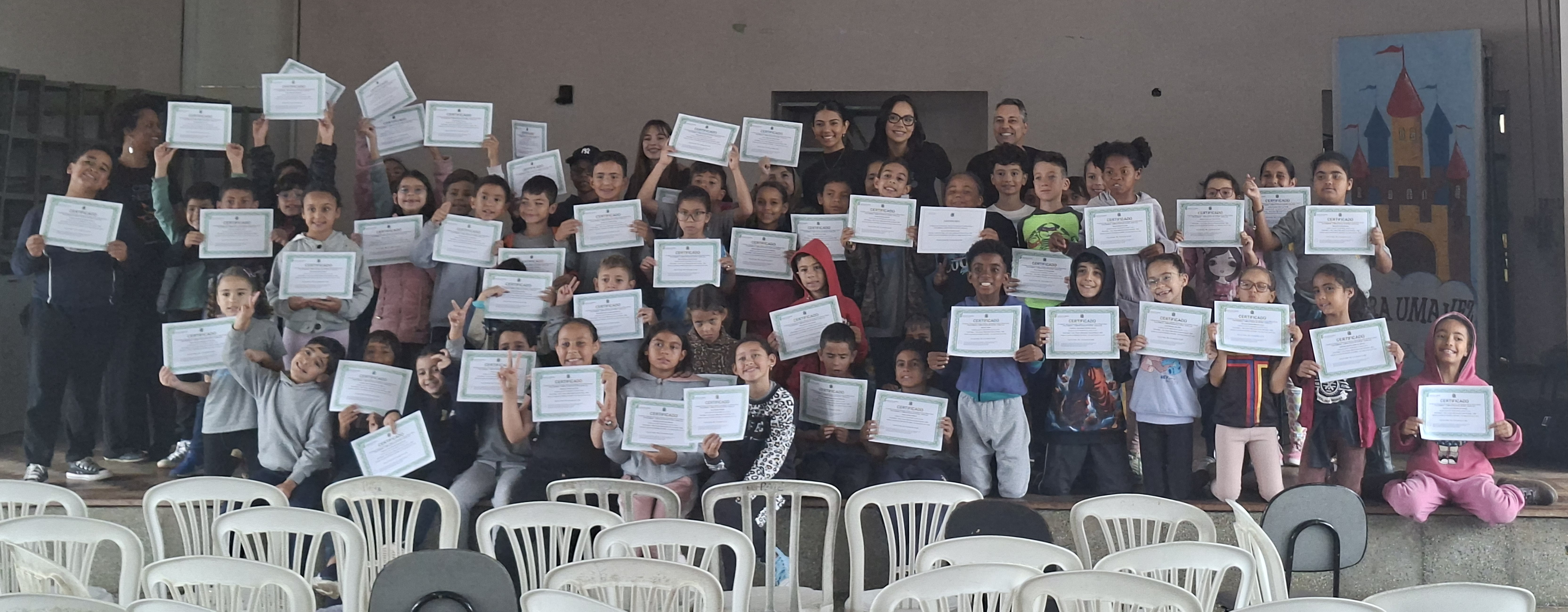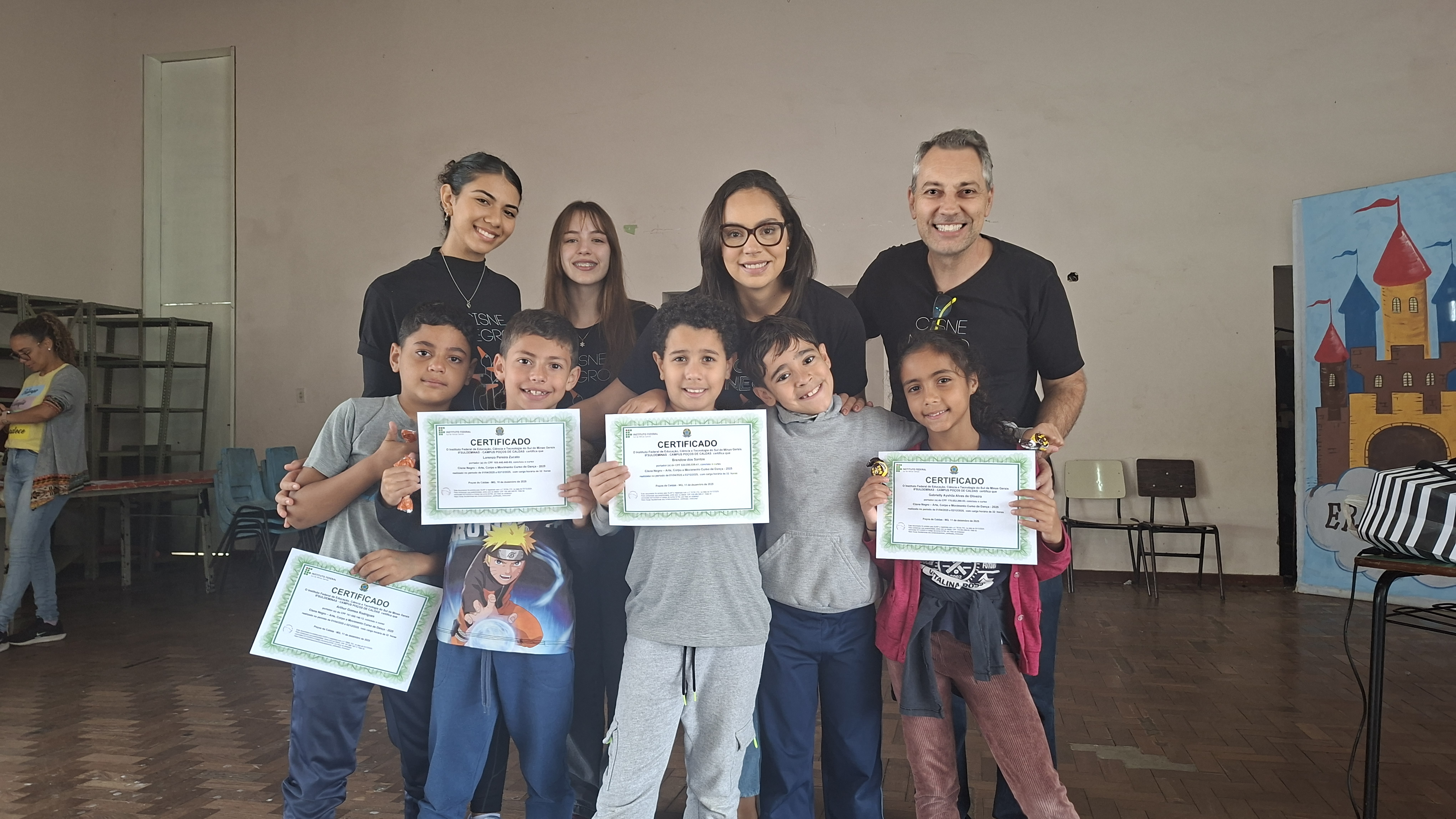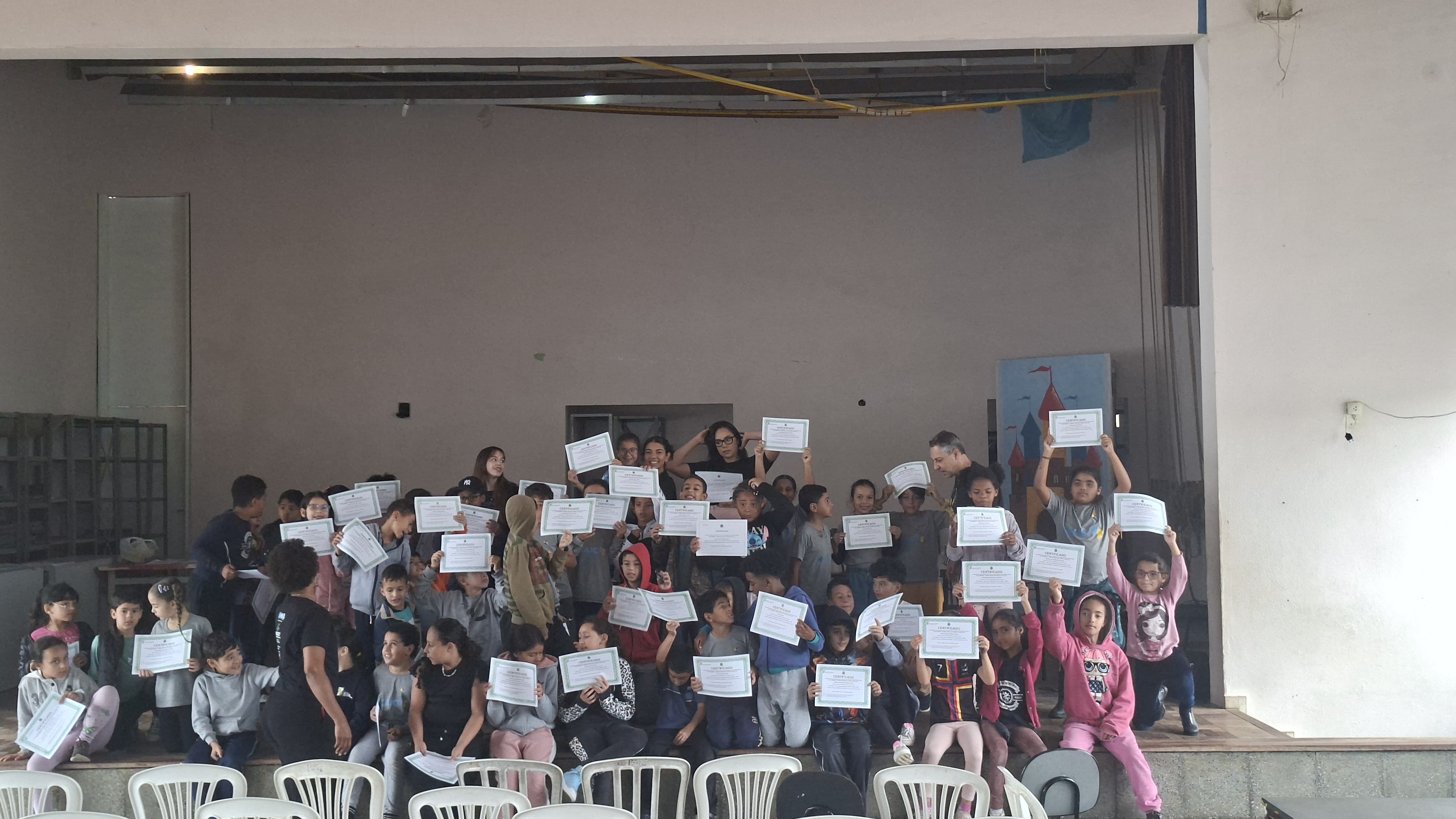 Ao longo do ano, os participantes estiveram envolvidos em atividades voltadas à musicalidade, coordenação motora e expressão corporal. Como forma de reconhecer o envolvimento e a dedicação dos alunos, foi realizada, no dia 12 de março de 2026, a cerimônia de entrega de certificados. A atividade aconteceu no PMJ João Monteiro, no bairro Jardim Esperança. Os certificados também foram entregues na biblioteca do campus, onde as crianças tiveram a oportunidade de conhecer o espaço, circular pelo ambiente e visitar as exposições realizadas no local.