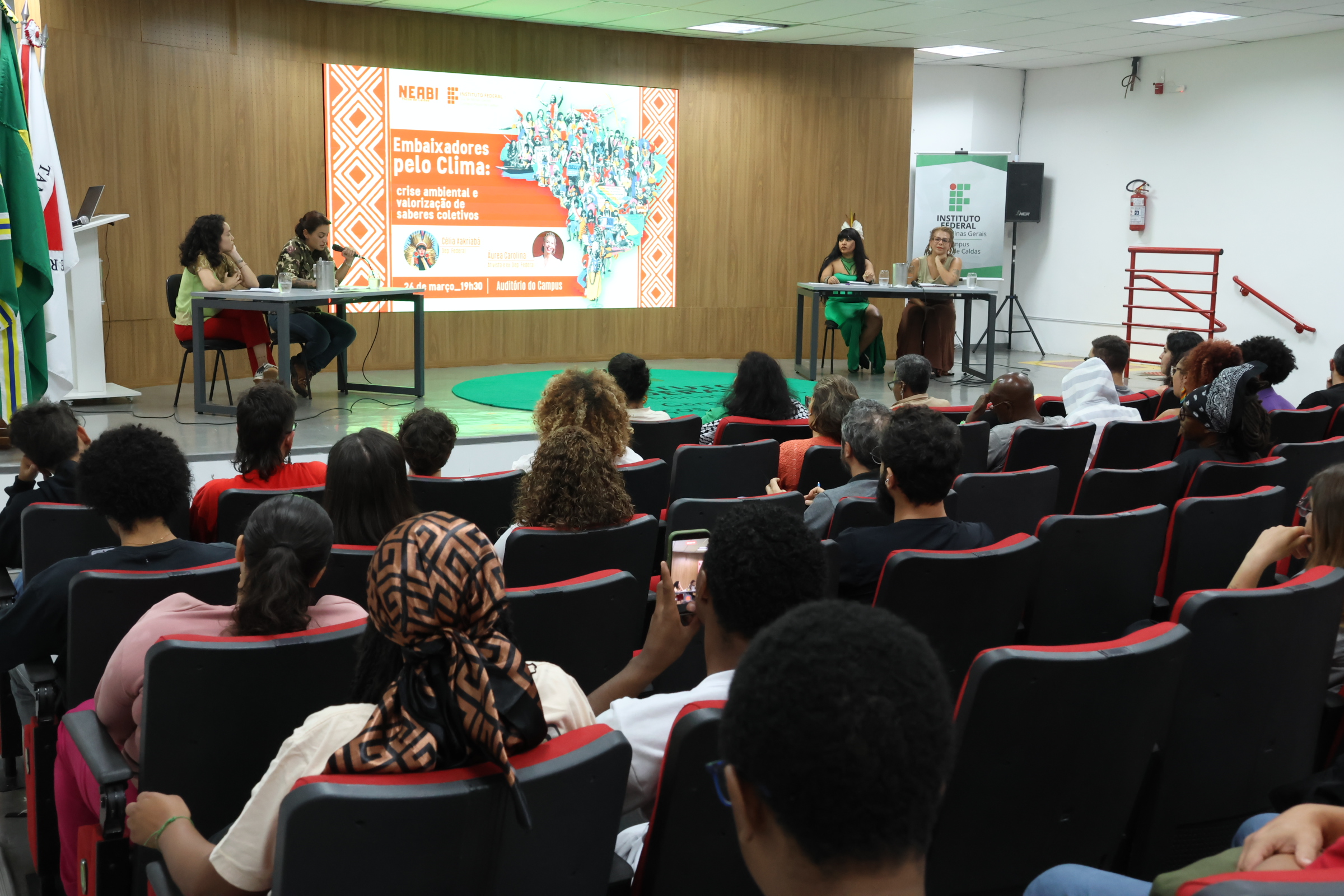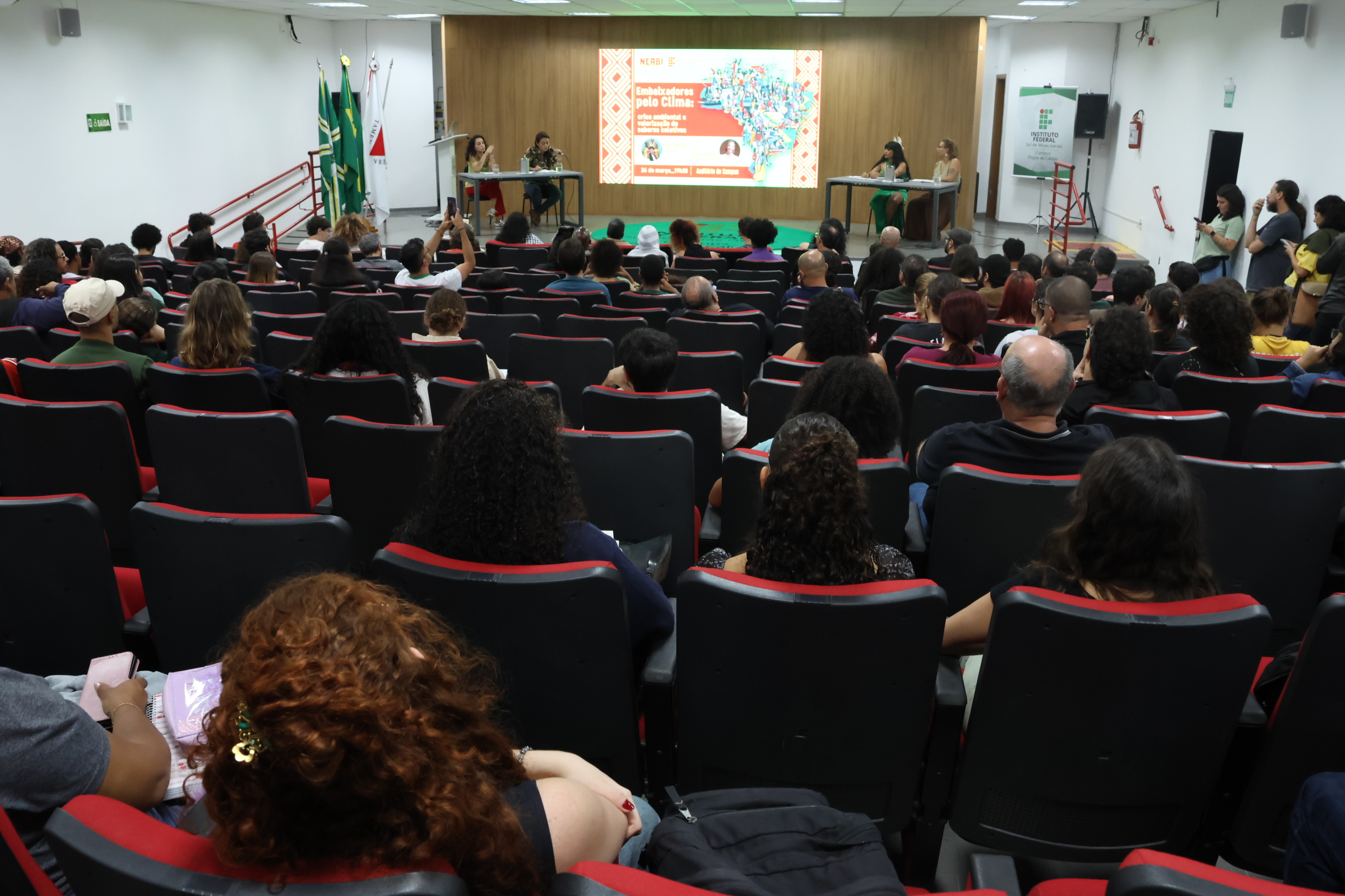 4M0A4849O IFSULDEMINAS – Campus Poços de Caldas sediou, no dia 26 de março, o encontro do projeto Embaixadores pelo Clima, idealizado pela deputada federal Célia Xakriabá. A atividade reuniu estudantes, servidores e membros da comunidade para discutir temas centrais relacionados à crise ambiental e à construção de uma agenda de justiça climática.