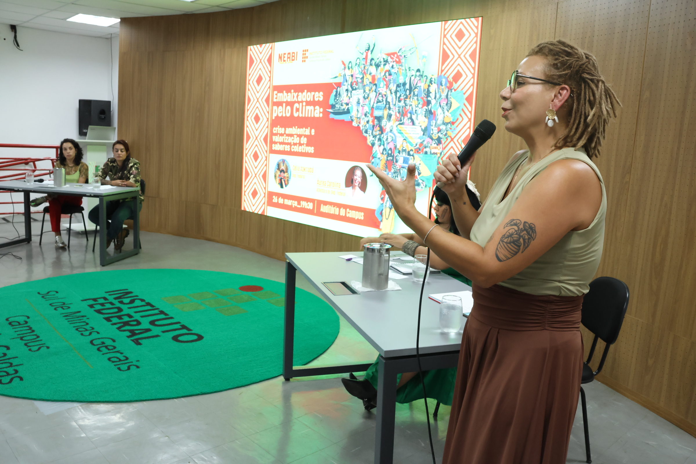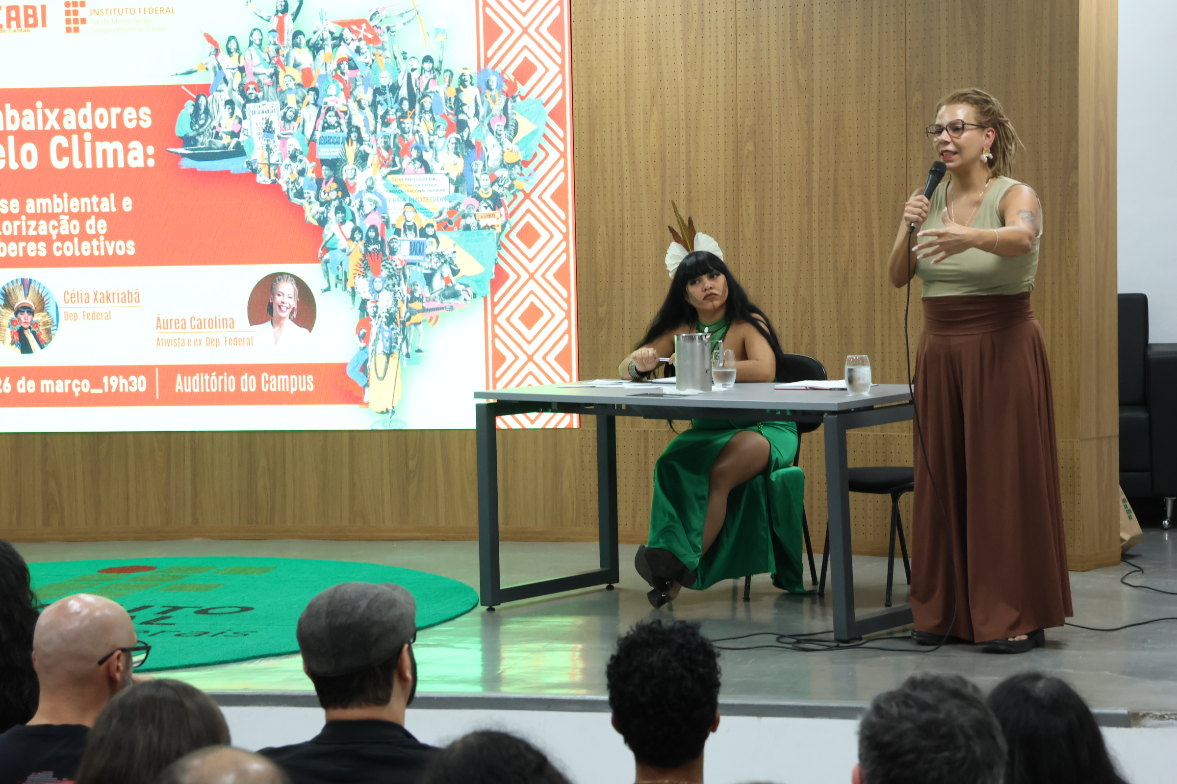 4M0A4665O evento contou ainda com a presença de Carolina Ferreira, cientista ambiental e professora substituta no Campus Poços de Caldas, e Áurea Carolina, ativista e ex-parlamentar, que destacou a importância da construção coletiva do conhecimento e da participação social na formulação de políticas públicas. "Produzir a partir de nós esses saberes e fazer com que isso cada vez mais repercuta em todos os espaços de tomada de decisão é fundamental. É também a partir desse lugar de solidariedade que podemos pensar mudanças e pressionar por políticas públicas mais justas", ressaltou.