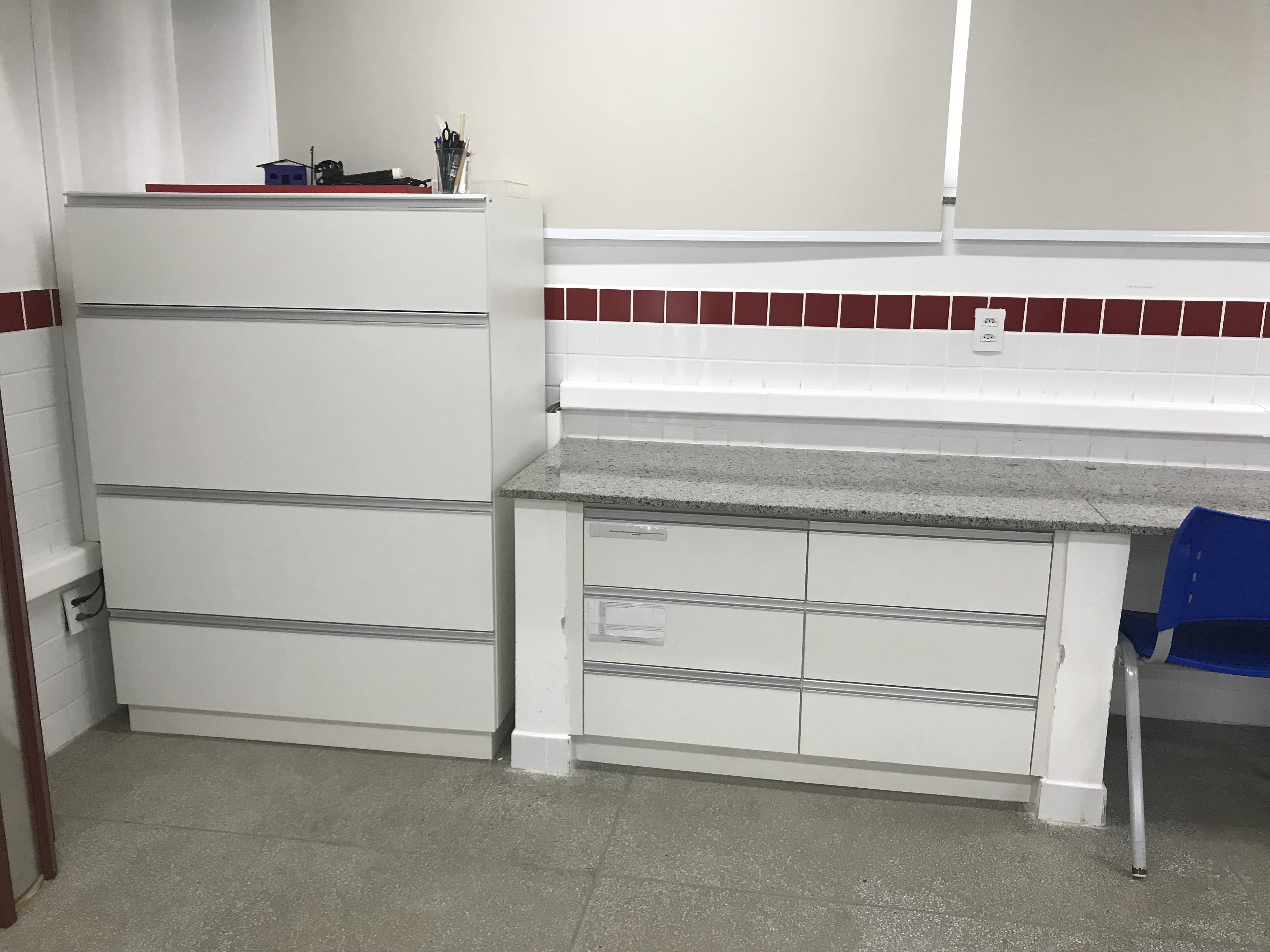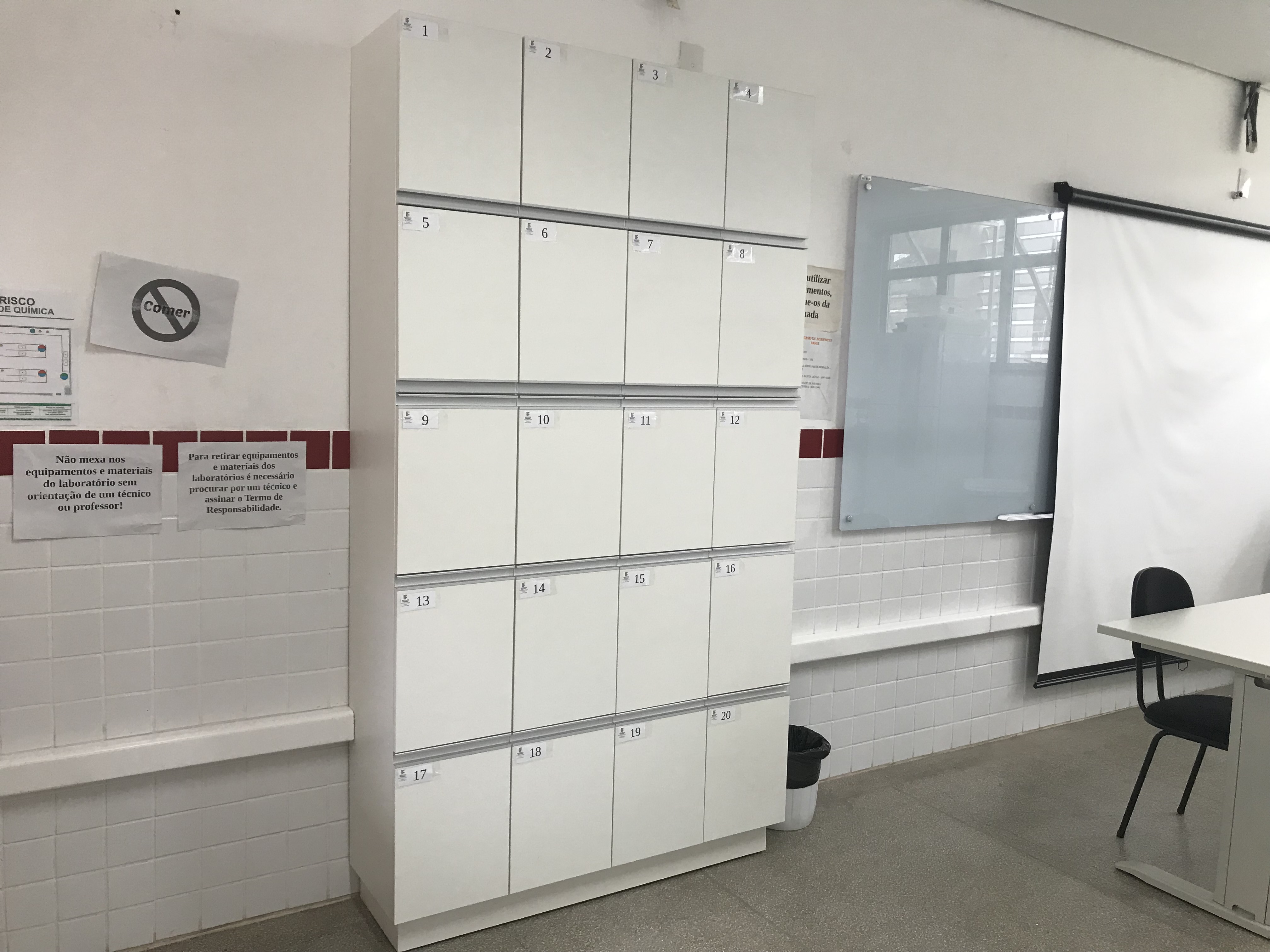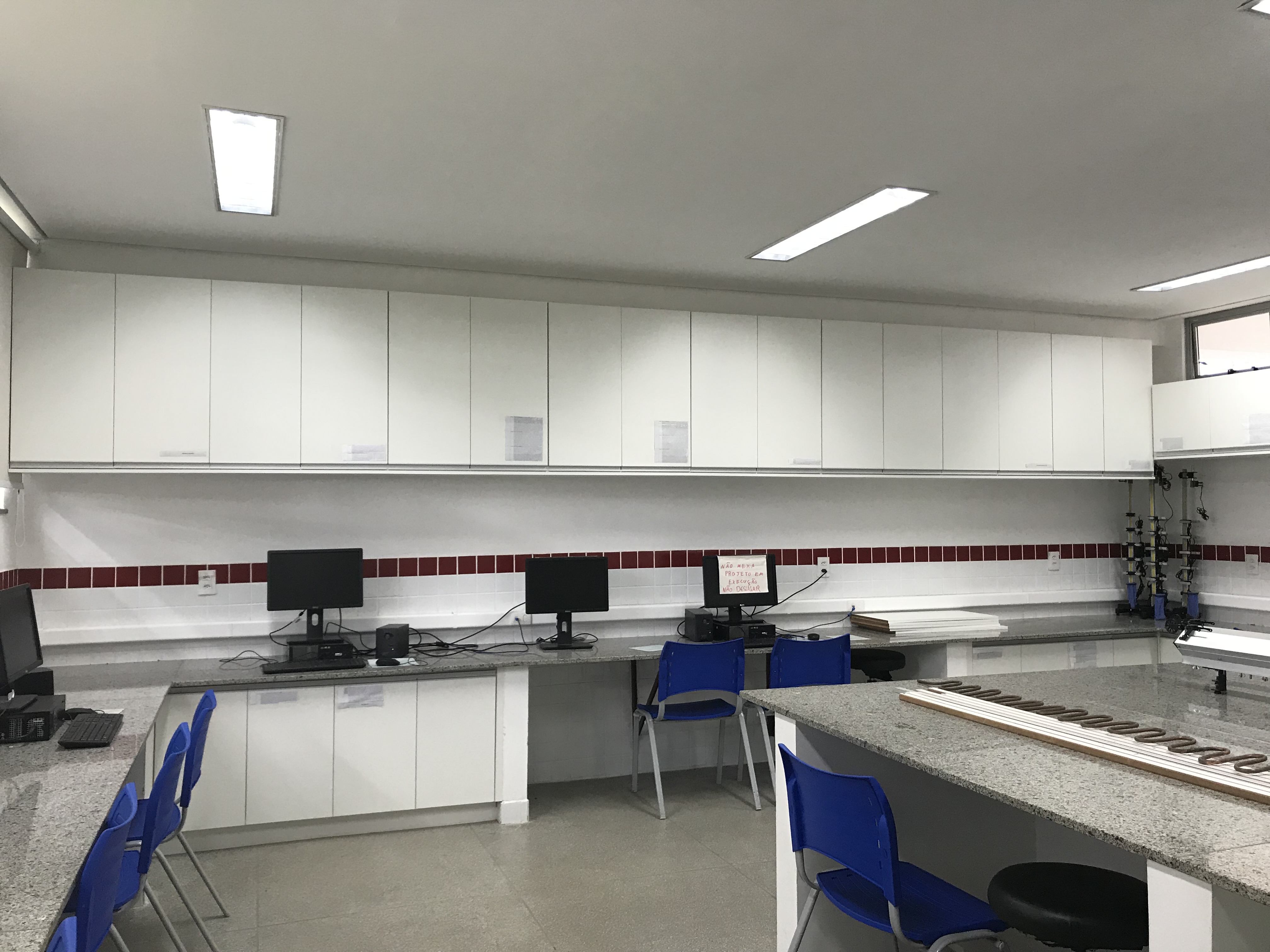 Os laboratórios de Eletrotécnica, Instalações Elétricas, Física, Química e Biologia receberam armários planejados com o intuito de otimizar a organização dos espaços. Para facilitar a entrega dos trabalhos pelos alunos, cada professor terá um escaninho à sua disposição. Os escaninhos estão localizados no pavimento térreo do Prédio Administrativo, ao lado da Copa.