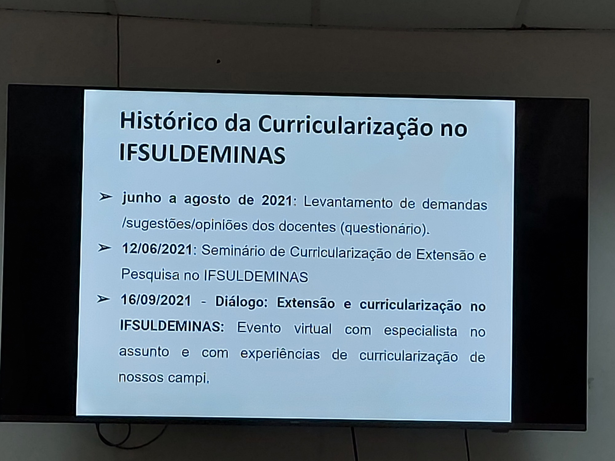 Na ocasião, os membros da mesa comentaram sobre o histórico da curricularização da Extensão no Brasil e no IFSULDEMINAS, sobre as iniciativas e projetos exitosos junto à comunidade, os desafios e as perspectivas futuras. Também houve o compartilhamento de experiências com o público do evento, composto por servidores e colaboradores do Campus Poços de Caldas. Atualmente, todos os cursos presenciais do IFSULDEMINAS contam as práticas extensionistas curricularizadas previstas nos projetos pedagógicos dos cursos.