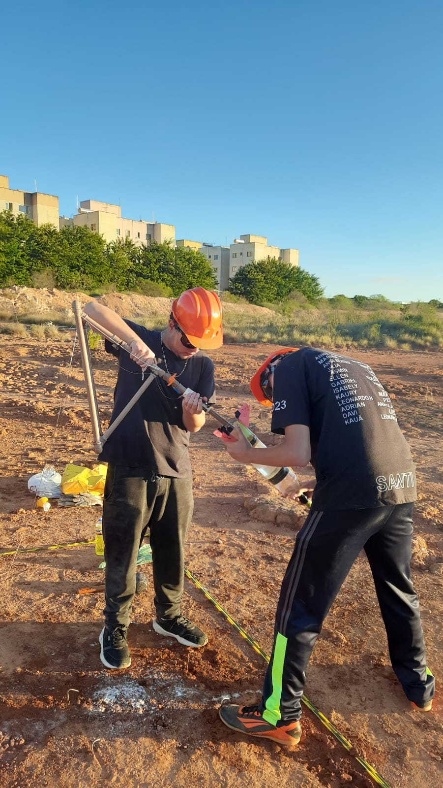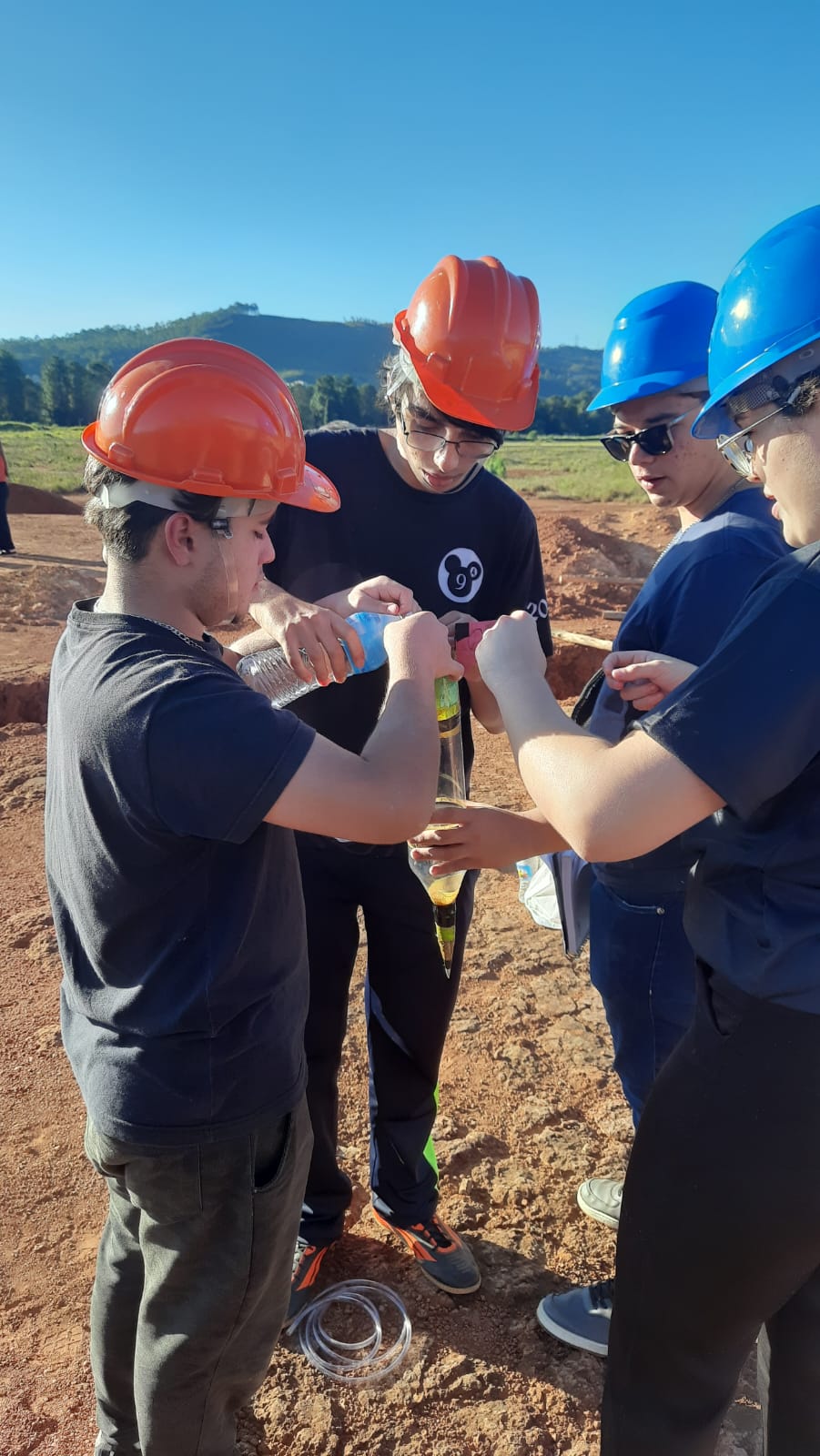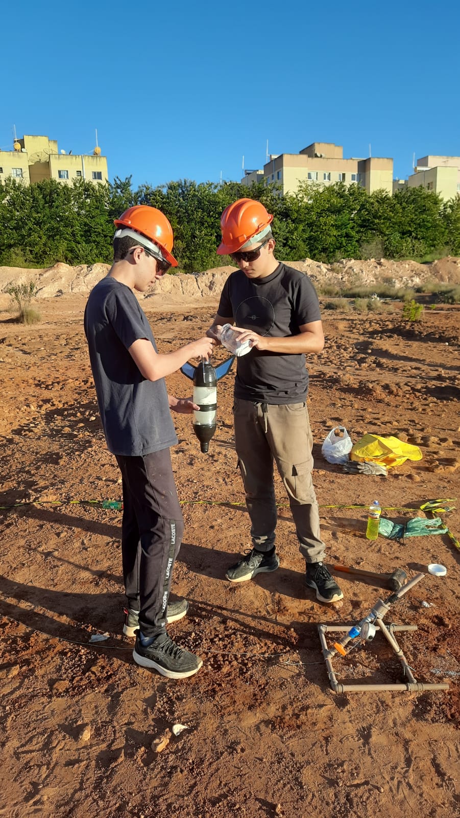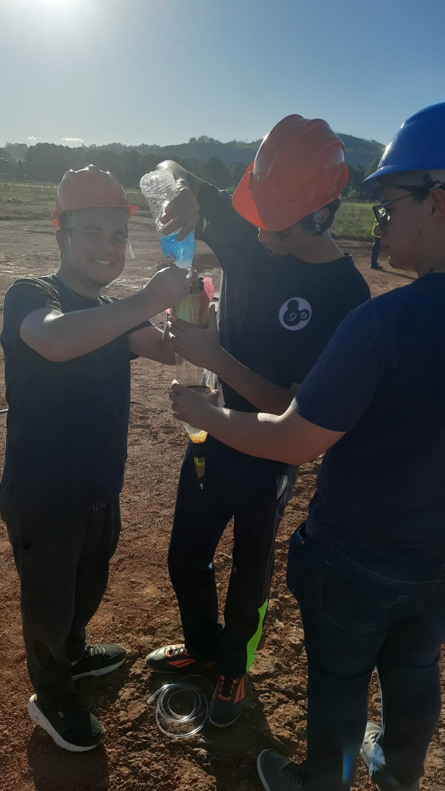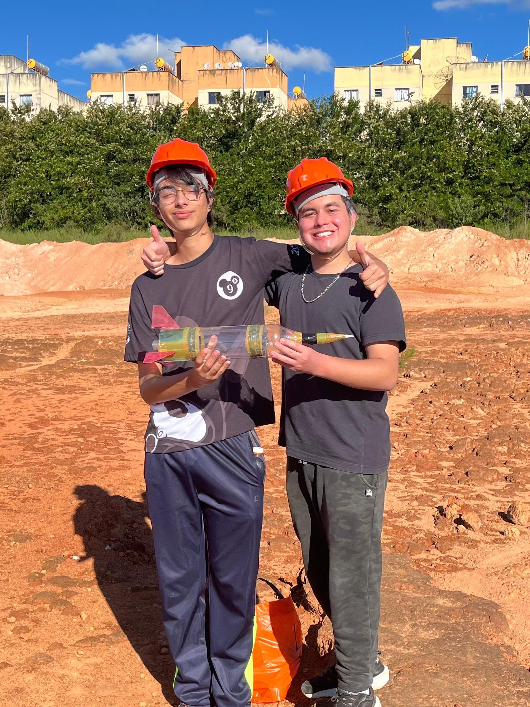 Os foguetes foram construídos com garrafas PET, utilizando propulsão a ar comprimido e reações químicas com bicarbonato de sódio e vinagre, com o objetivo de atingir a maior distância possível. A ação combinou ciência, criatividade e diversão!