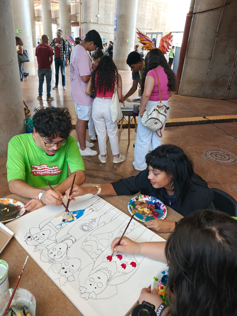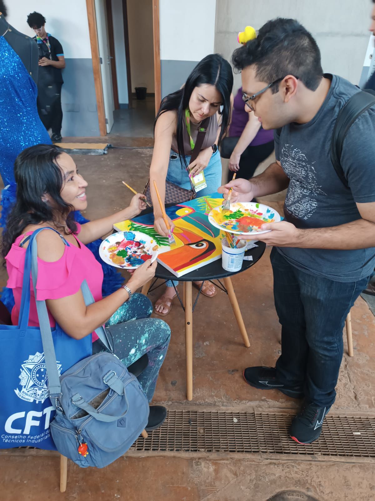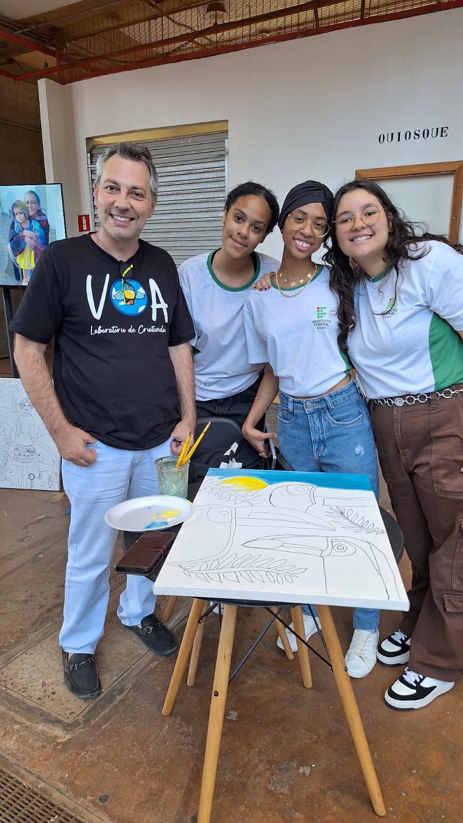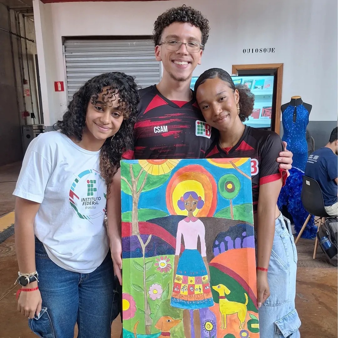 Com uma delegação formada por mais de 50 participantes, entre alunos e servidores, o campus brilhou com o projeto Pintura Coletiva, desenvolvido pelo Laboratório VOA. A proposta levou arte, cor e interação ao público, que pôde expressar sua criatividade ao participar da confecção de sete telas colaborativas, posteriormente sorteadas entre os visitantes que deixaram sua marca no estande.