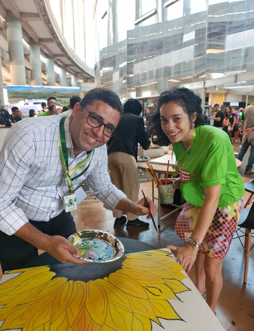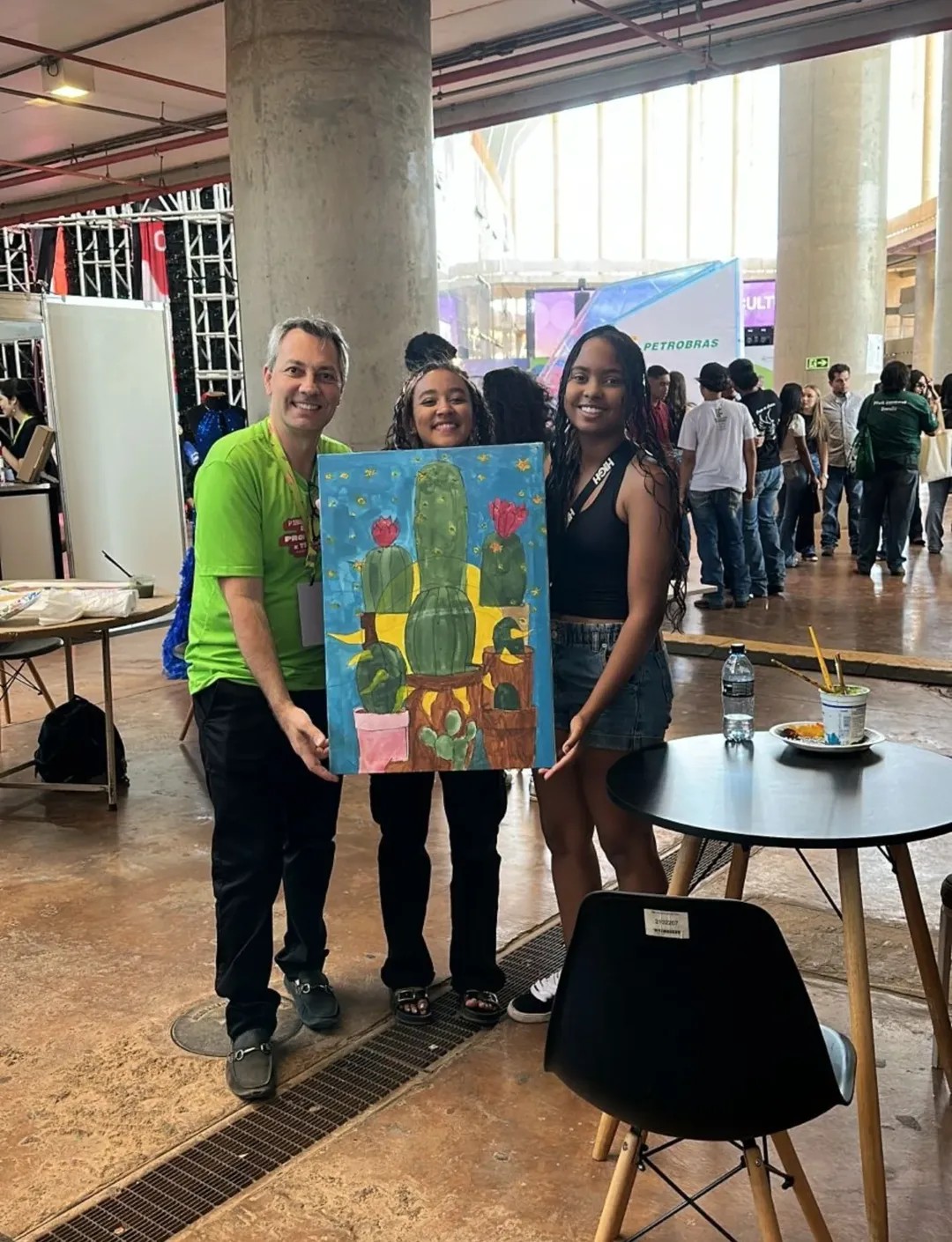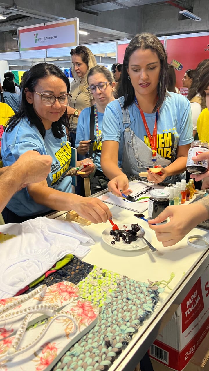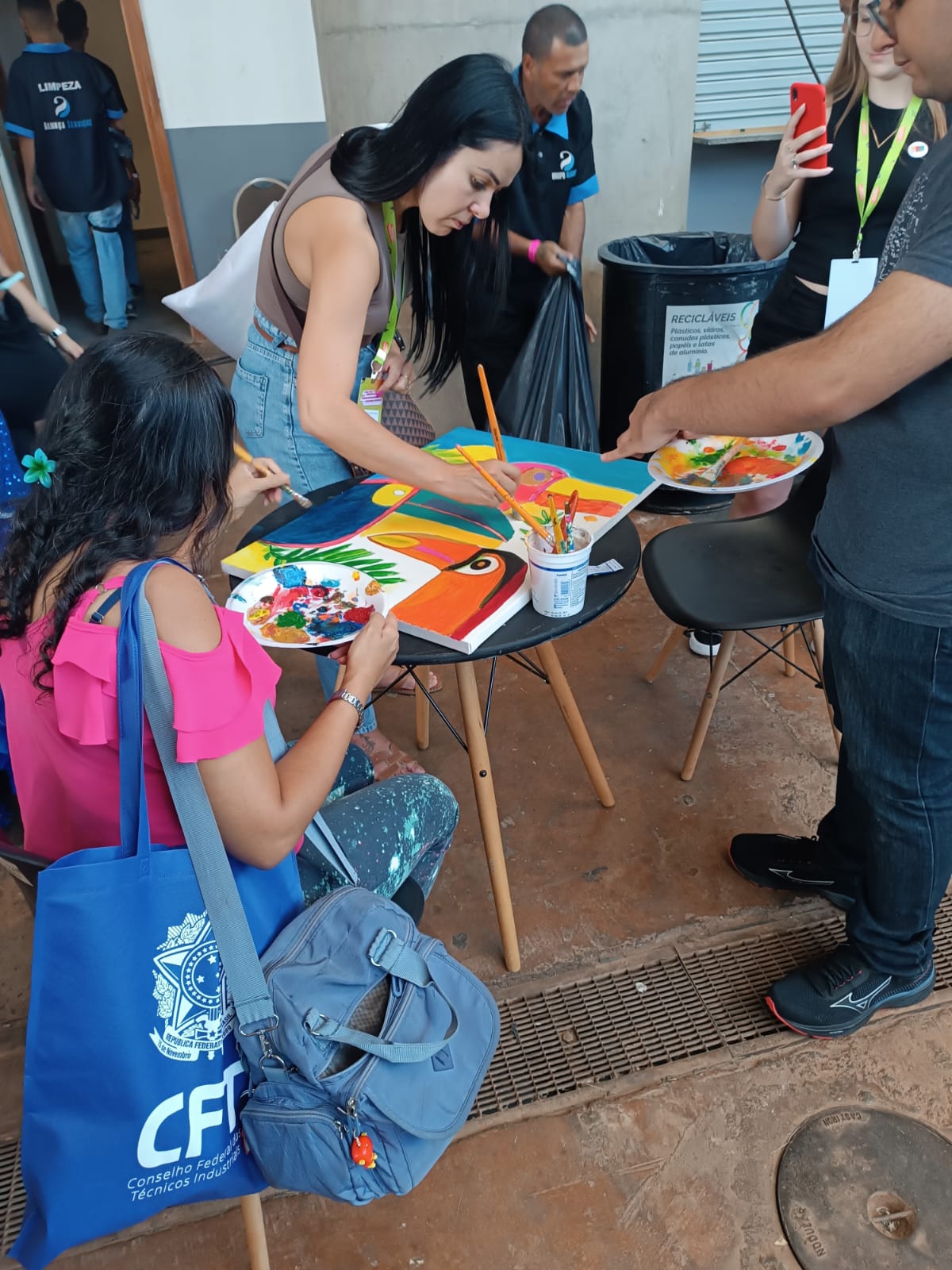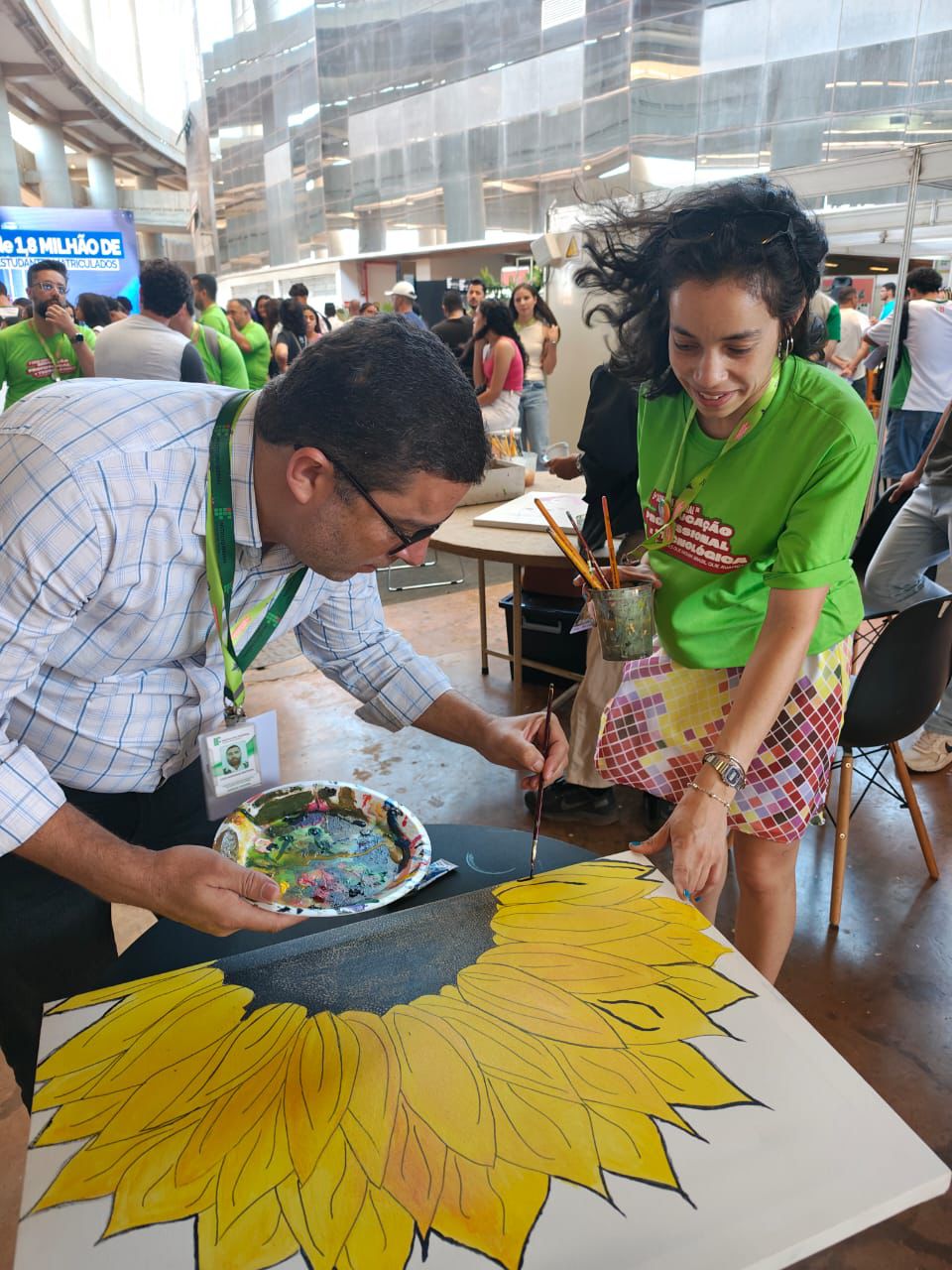 Com uma delegação formada por mais de 50 participantes, entre alunos e servidores, o campus brilhou com o projeto Pintura Coletiva, desenvolvido pelo Laboratório VOA. A proposta levou arte, cor e interação ao público, que pôde expressar sua criatividade ao participar da confecção de sete telas colaborativas, posteriormente sorteadas entre os visitantes que deixaram sua marca no estande.